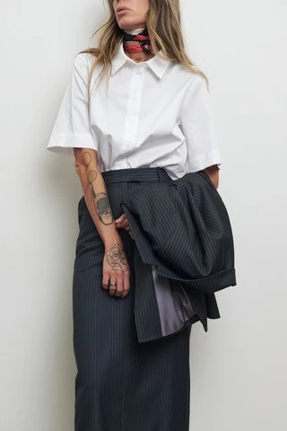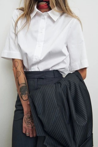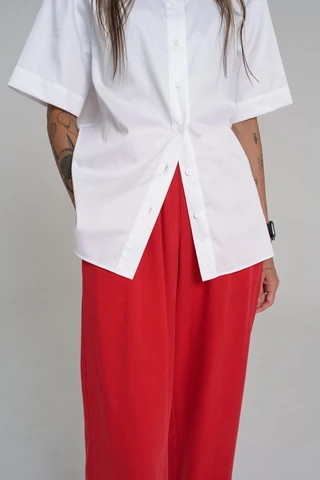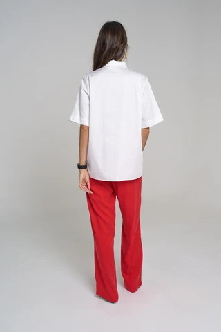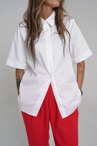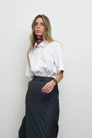 Рубашка прямого кроя. Выполнена из гладкого хлопка, который прекрасно сохраняет форму изделия. Короткий рукав, классический воротник и застежка на пуговицы. Рубашка послужит незаменимой базой в вашем гардеробе.