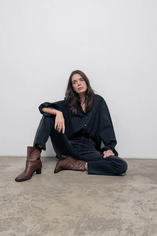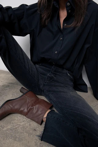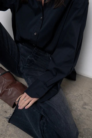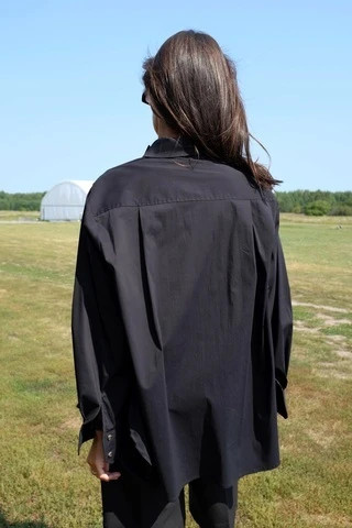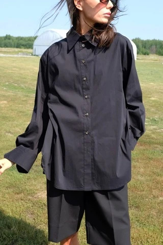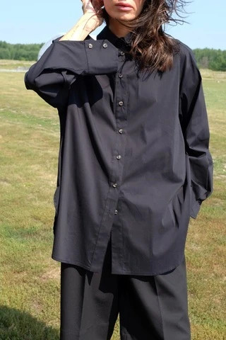 Рубашка объемная с контрастными пуговицами, черный