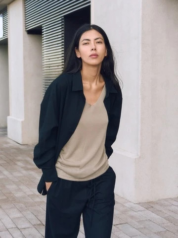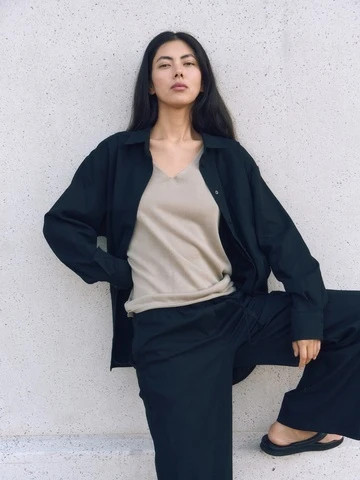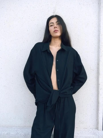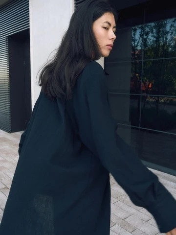 Рубашка объемного кроя изо льна, черный