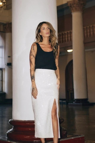 Юбка с пайетками, молочный